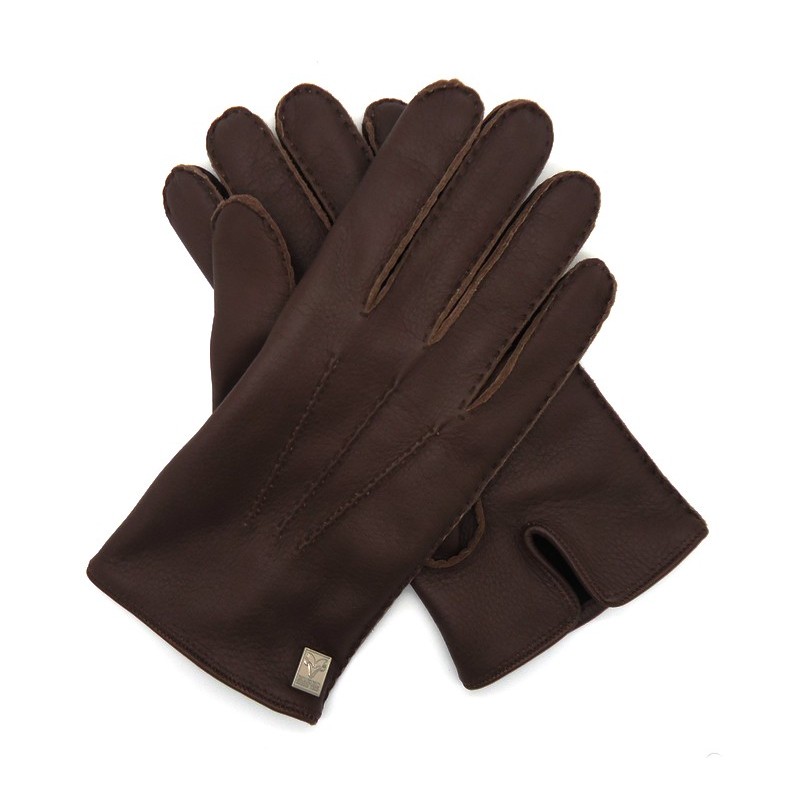 La Maison Baltayan vous propose ce modèle en cerf marron doublé en cashemire noir.